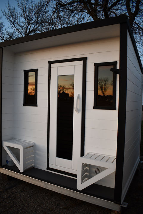 Our saunas are built on a custom welded aluminum frame with fiberglass or wool insulation, beautiful Western Red Cedar interiors, practical non-slip rubber flooring, durable steel roof, with siding of your choice (Cedar lap siding is standard). Our saunas also come with premium electric or wood-fired sauna heater with LED lighting. Bench layout, window and door placement are all custom to order. Delivery or on-site fabrication are available.
