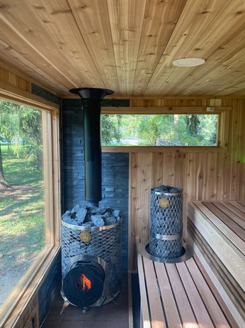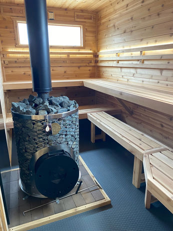 Our saunas are built on a custom welded aluminum frame with fiberglass or wool insulation, beautiful Western Red Cedar interiors, practical non-slip rubber flooring, durable steel roof, with siding of your choice (Cedar lap siding is standard). Our saunas also come with premium electric or wood-fired sauna heater with LED lighting. Bench layout, window and door placement are all custom to order. Delivery or on-site fabrication are available.